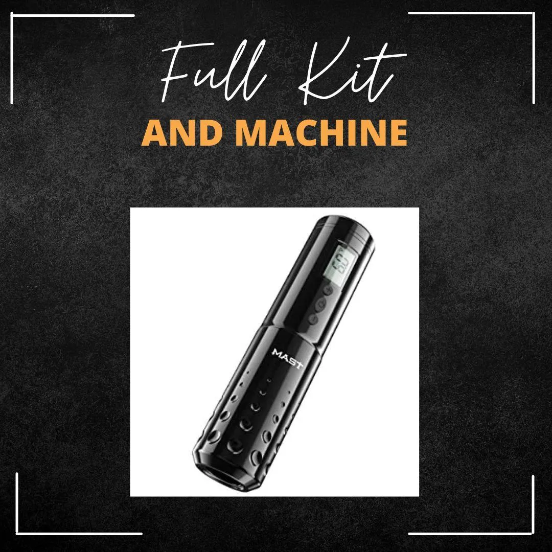 Mast wireless machine, 4 boxes needles, Pigments, practice material, after treatment ointments, client forms and practice head.